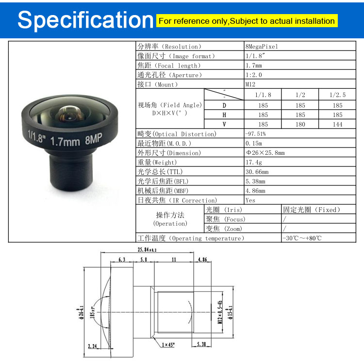 【五】如果镜头旋到最里面,近景可聚焦,但您要的距离无法聚焦,则代表摄像机板芯太浅,此镜头不适合使用。