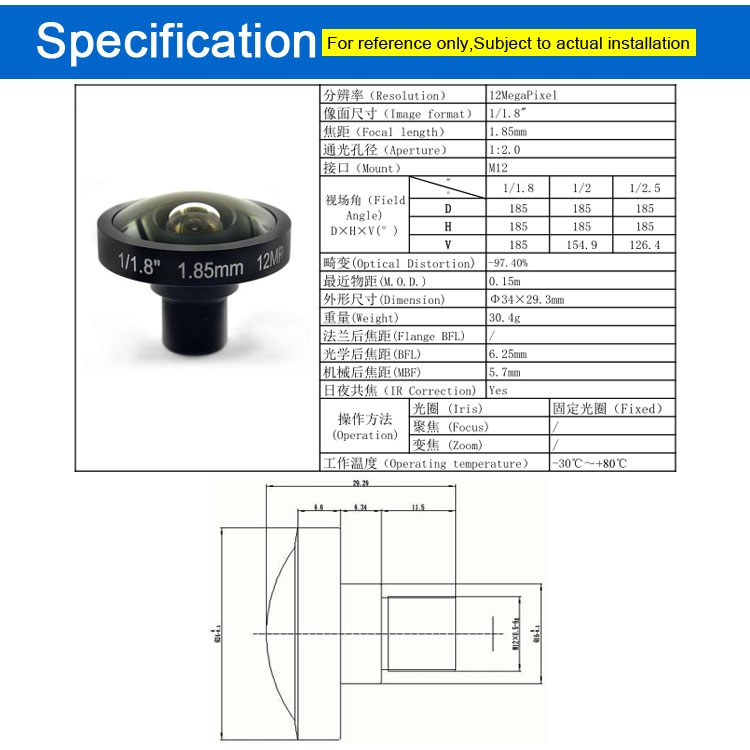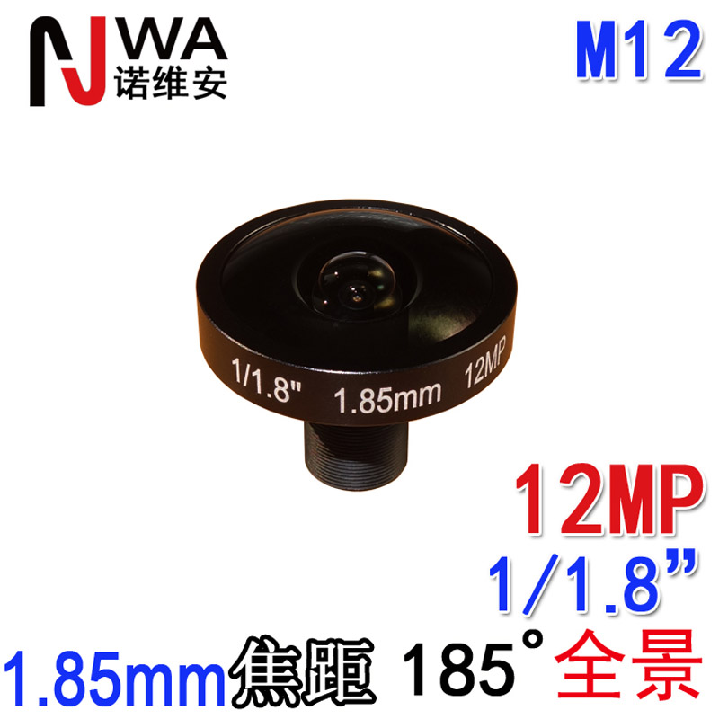 M12*0.5接口1.85mm焦距镜头1/1.8" 185度广角超高清12MP监控镜嘴