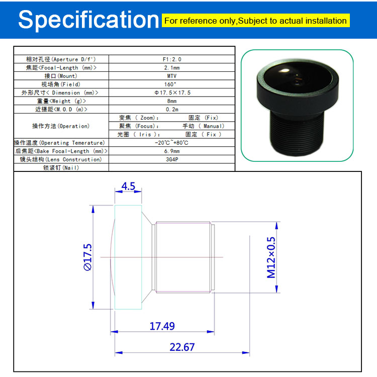 【五】如果镜头旋到最里面,近景可聚焦,但您要的距离无法聚焦,则代表摄像机板芯太浅,此镜头不适合使用。