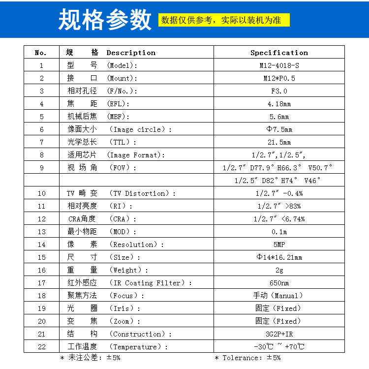 适用芯片 (Image Format): 1/2.7",1/2.5",
