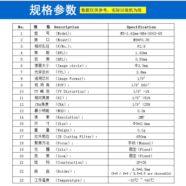型号 (Model): M5-1.62mm-8H4-S002-65