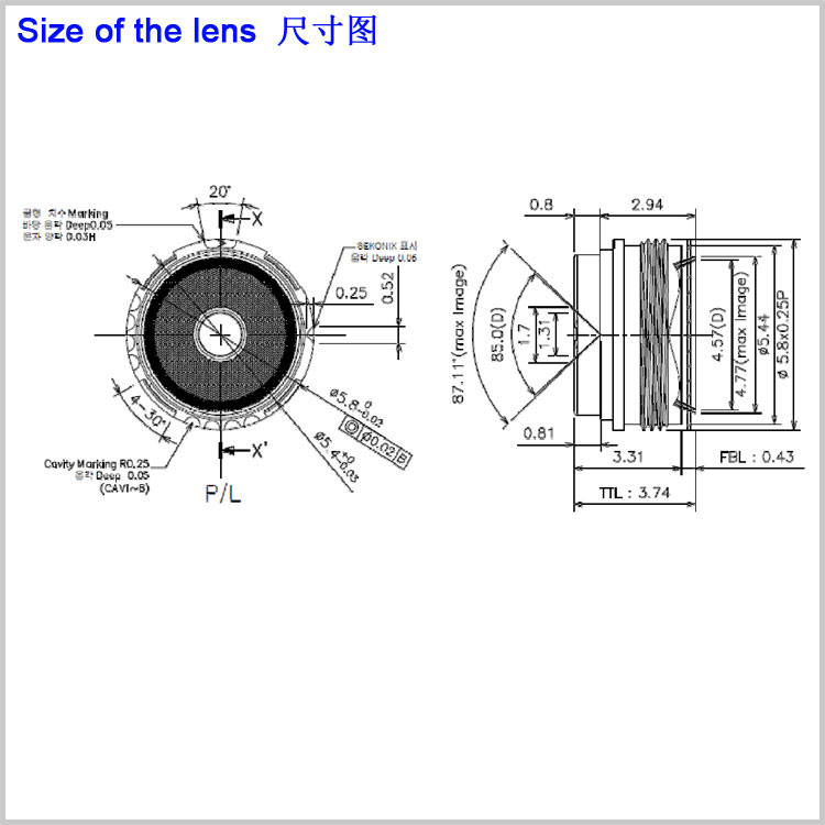 光学总长 (TTL): 3.74mm