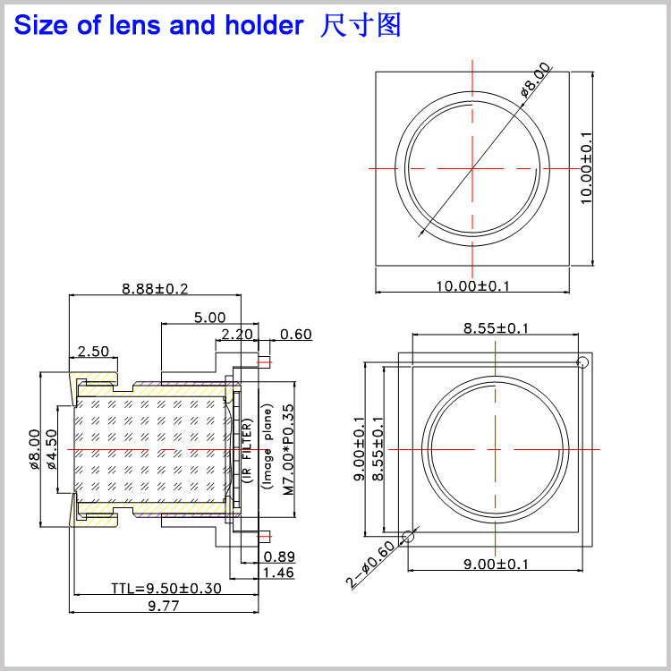 例如,M7*P0.35,其中M7代表螺纹直径在7mm左右,称为M7镜头,常见的直径一般为6.8mm左右