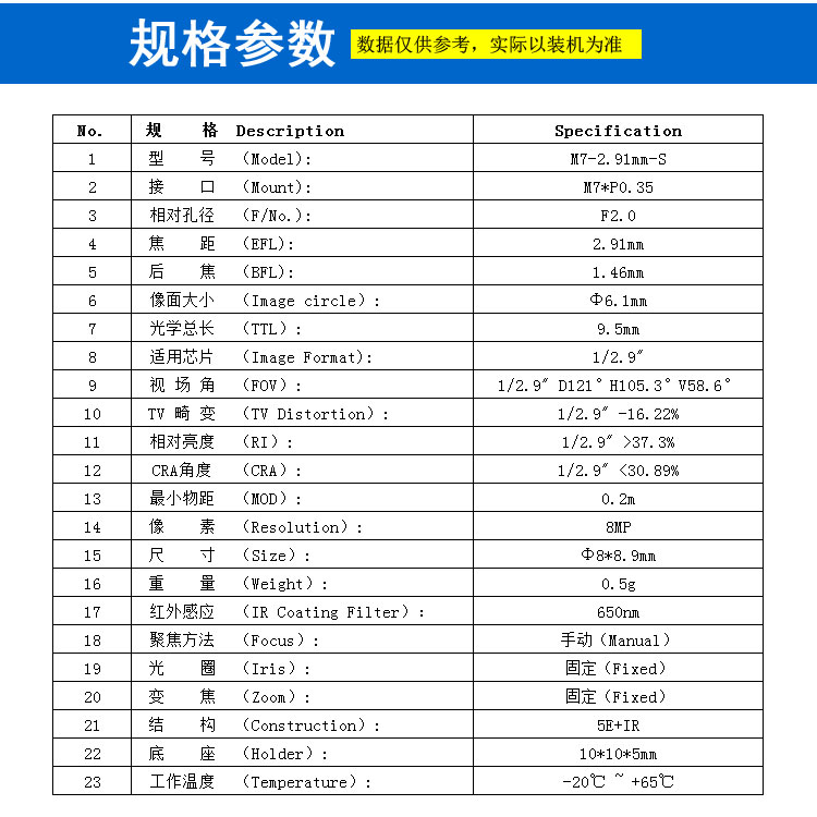 适用芯片 (Image Format): 1/2.9"