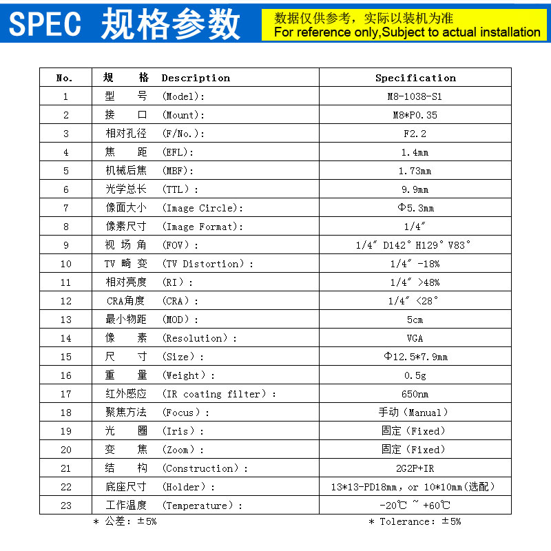 【五】镜头和摄像机种类繁多,只有在实物安装后,才知道适不适合。所以推荐先购买样品安装。合适再量购。