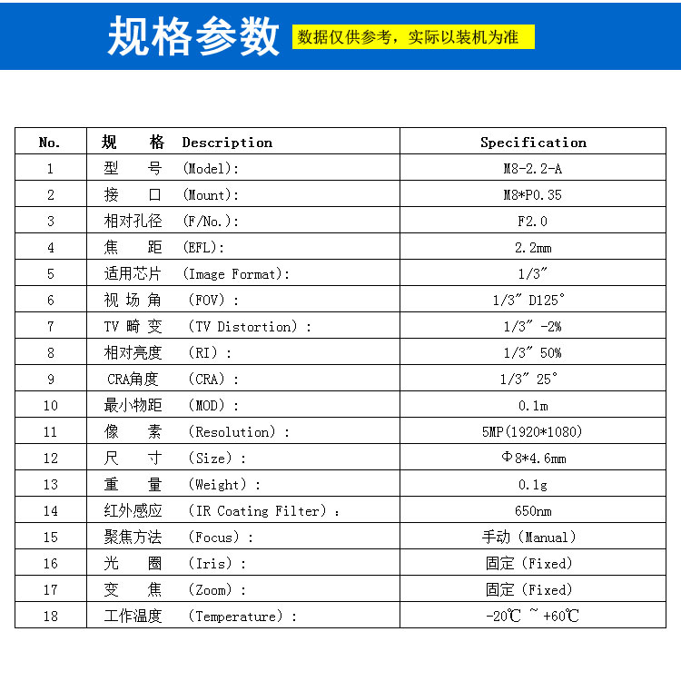 【一】要确定您现有的摄像机的感光芯片CMOS是什么尺寸的,例如:1/4”,即1/4英寸,代表感光芯片对角线尺寸为1/4英寸;