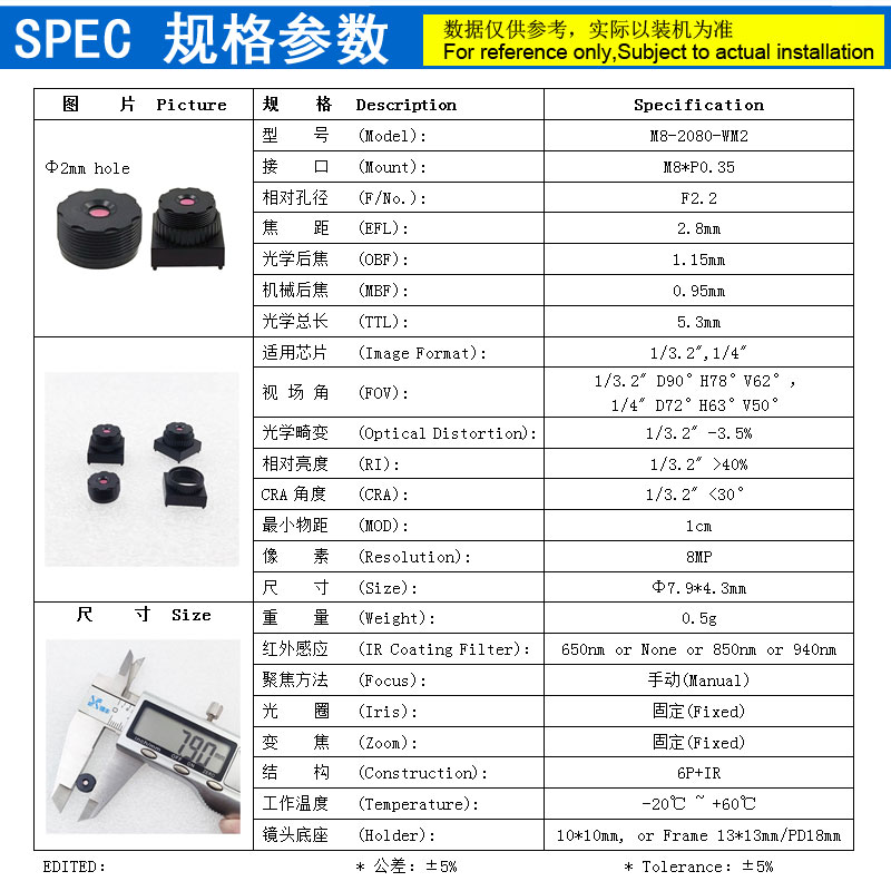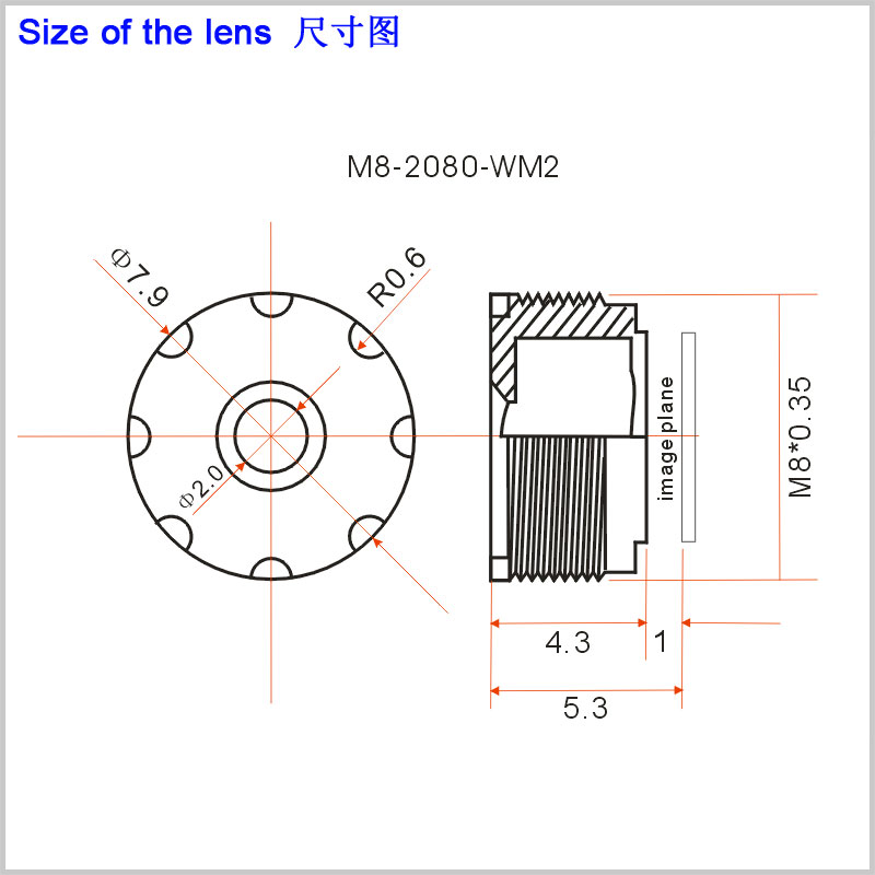 例如,M7*P0.35,其中M7代表螺纹直径在7mm左右,称为M7镜头,常见的直径一般为6.8mm左右