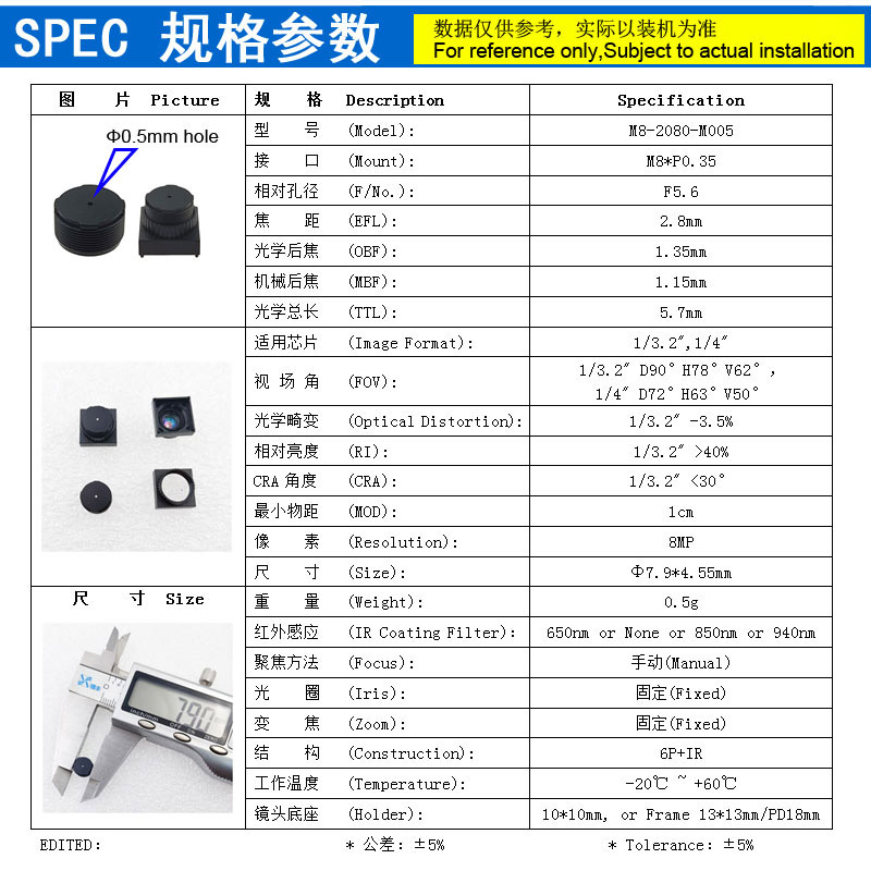 焦距 (EFL): 2.8mm