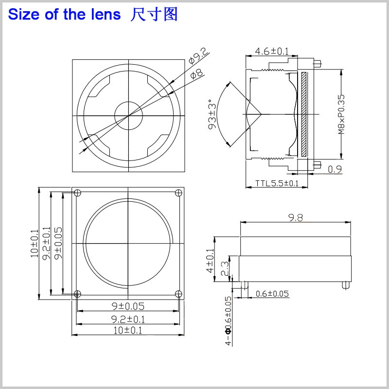 镜头底座 (Holder): 10*10mm, or 13*13-PD18mm
