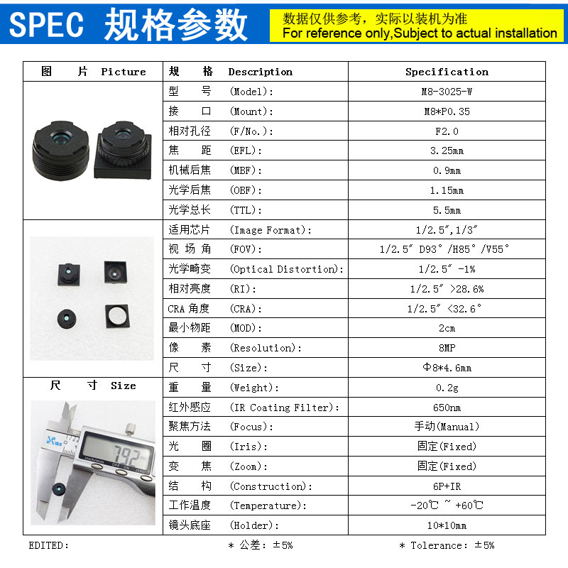 焦距 (EFL): 3.25mm