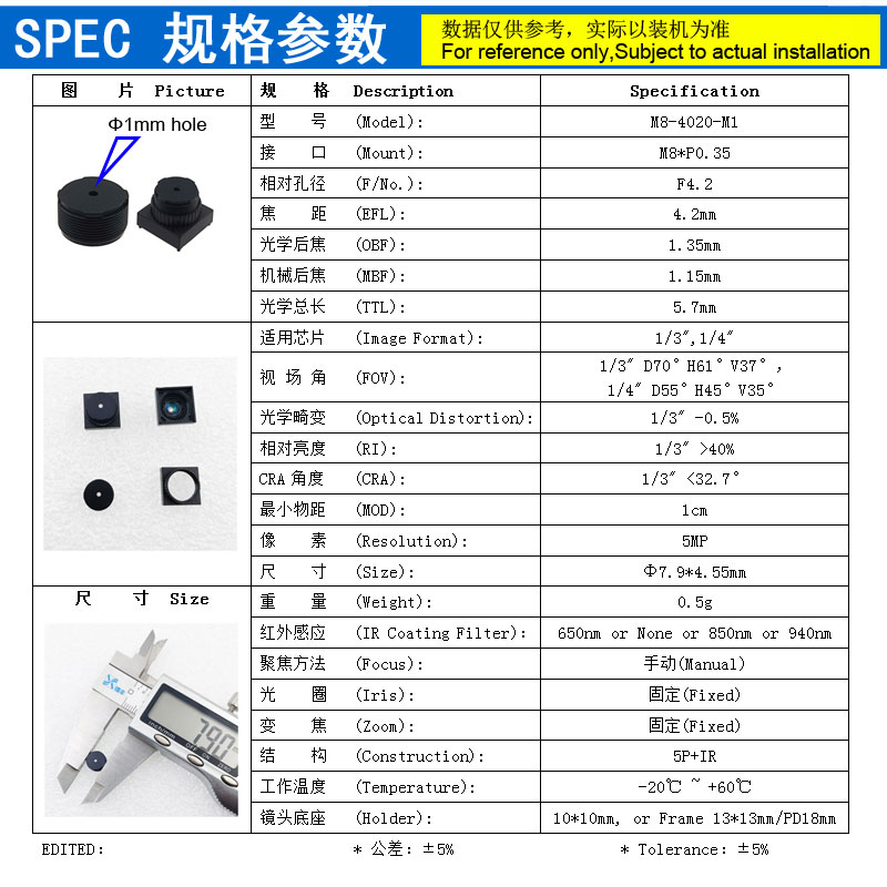 例如,M7*P0.35,其中M7代表螺纹直径在7mm左右,称为M7镜头,常见的直径一般为6.8mm左右