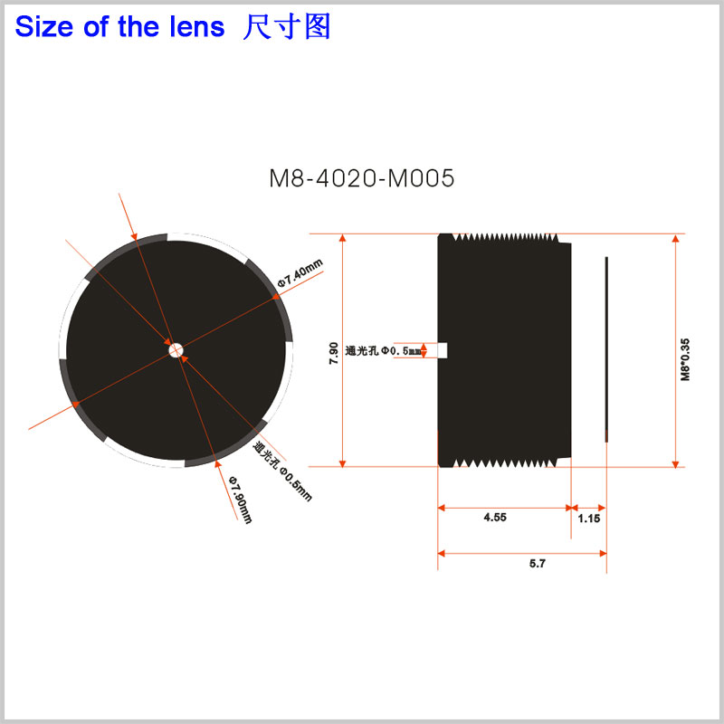 例如,M7*P0.35,其中M7代表螺纹直径在7mm左右,称为M7镜头,常见的直径一般为6.8mm左右
