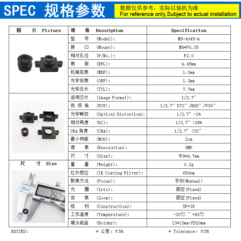 例如,M7*P0.35,其中M7代表螺纹直径在7mm左右,称为M7镜头,常见的直径一般为6.8mm左右