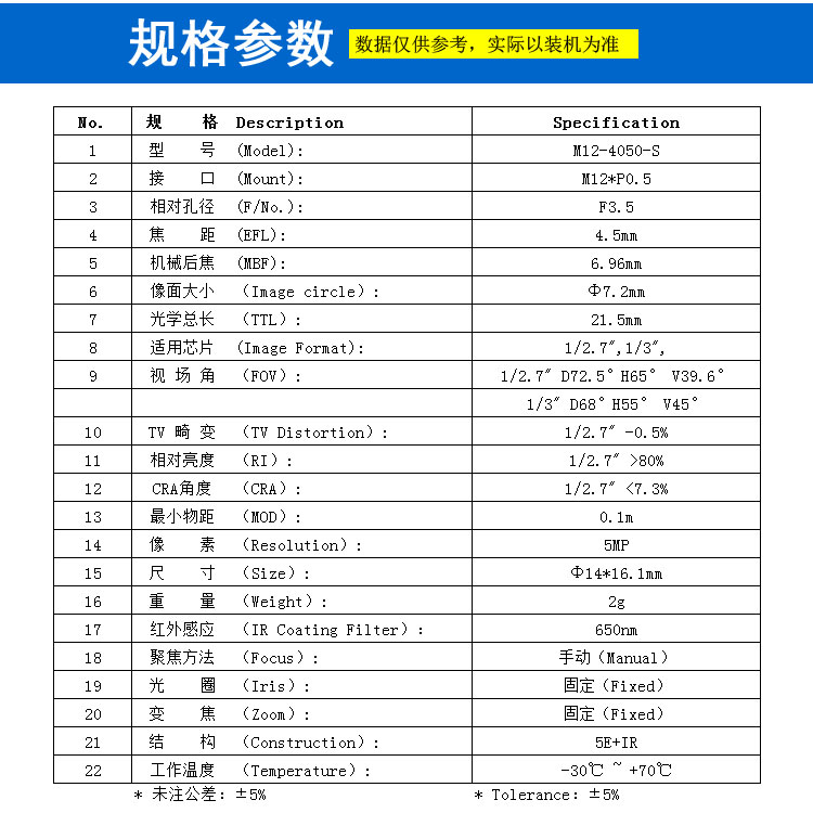 例如,M7*P0.35,其中M7代表螺纹直径在7mm左右,称为M7镜头,常见的直径一般为6.8mm左右