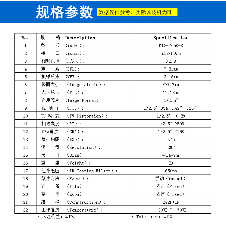 例如,M7*P0.35,其中M7代表螺纹直径在7mm左右,称为M7镜头,常见的直径一般为6.8mm左右