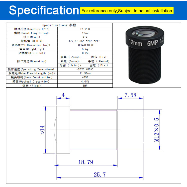 适用于:电脑视频、扫码、识别、监控、医疗、航拍、机器人等,可搭配1/2.5"芯片使用。可选:无滤光片、650nm滤光片、850nm窄带滤光片、650/940双通滤光片,等。 样品购买方式:可在1688或淘宝上搜索“深圳市诺维安电子有限公司”,认准本公司主体店铺购买,或联系咨询提供链接。 联系方式:13713937569