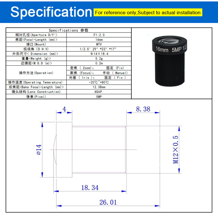 适用于:电脑视频、扫码、识别、监控、医疗、航拍、机器人等,可搭配1/2.5"芯片使用。可选:无滤光片、650nm滤光片、850nm窄带滤光片、650/940双通滤光片,等。 样品购买方式:可在1688或淘宝上搜索“深圳市诺维安电子有限公司”,认准本公司主体店铺购买,或联系咨询提供链接。 联系方式:13713937569