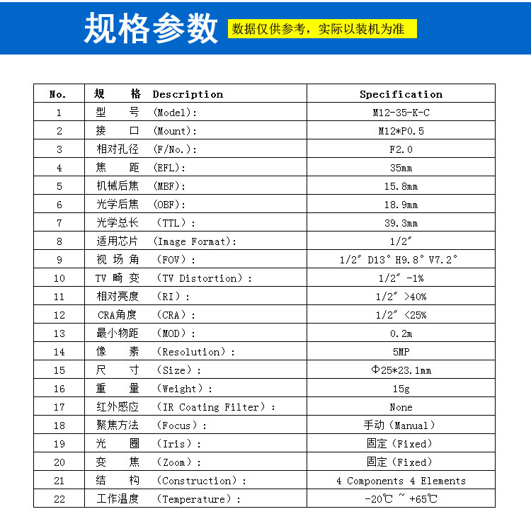 适用于:视频、扫码、识别、监控、医疗、航拍、机器人等,可搭配1/2"芯片使用。 样品购买方式:可在1688或淘宝上搜索“深圳市诺维安电子有限公司”,认准本公司主体店铺购买,或联系咨询提供链接。