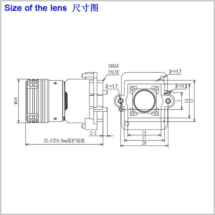 【三】确定您现有的镜头的焦距是多少的。如果确定不了,那您要知道上述芯片尺寸,并知道我们您期待的成像水平角度或对角角度是多少。