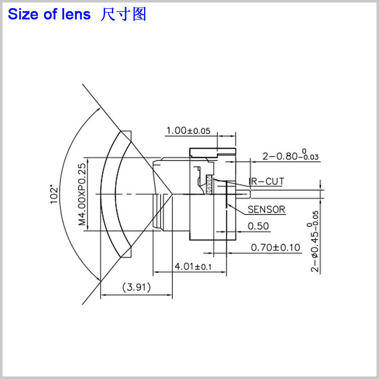 M4.2接口0.565mm焦距广角镜头98.2度牙科胃镜胶囊医用内窥镜1/8