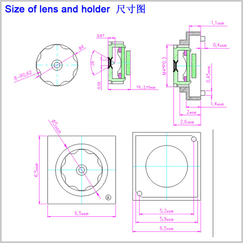 底座 (Holder): "6.5*6.5mm