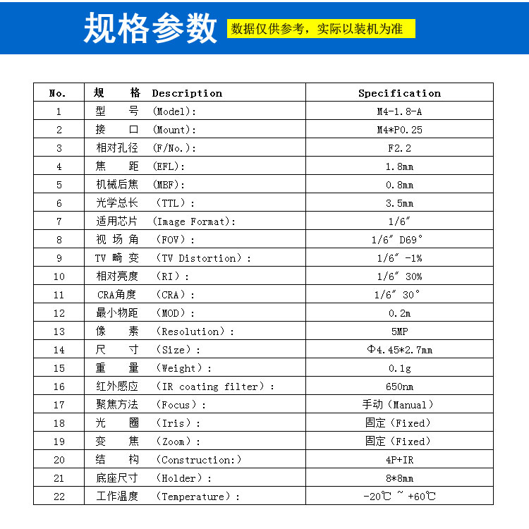 例如,M7*P0.35,其中M7代表螺纹直径在7mm左右,称为M7镜头,常见的直径一般为6.8mm左右
