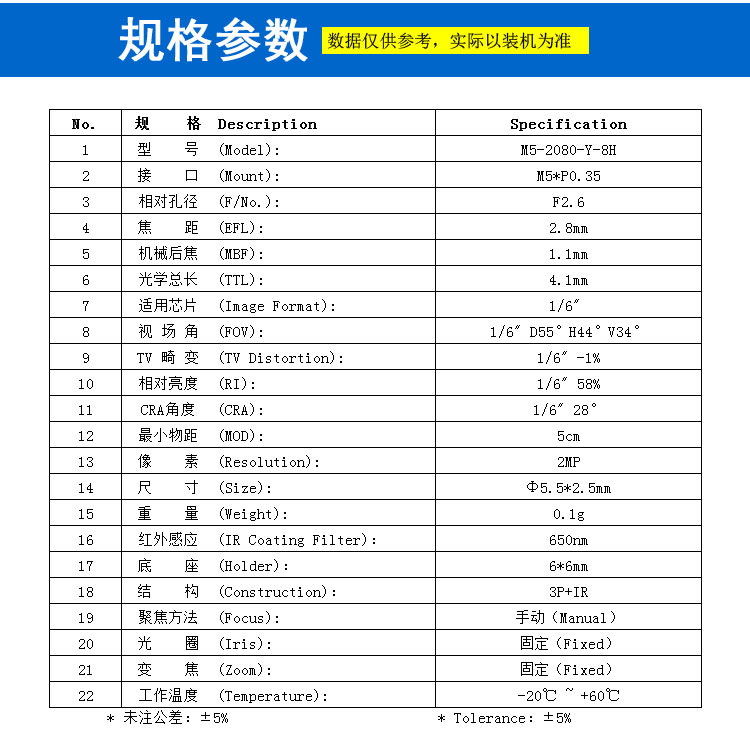 焦距 (EFL): 2.8mm