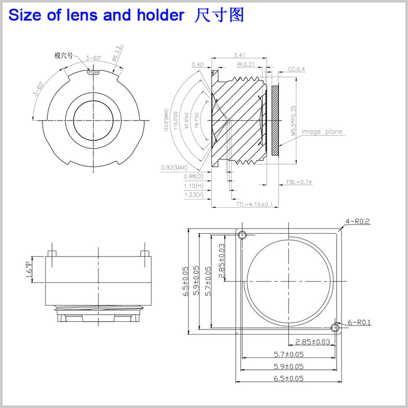 视场角 (FOV): 1/5" D115°/H97.5°/V79°