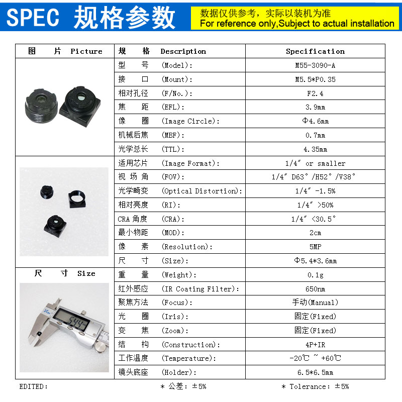 【五】镜头和摄像机种类繁多,只有在实物安装后,才知道适不适合。所以推荐先购买样品安装。合适再量购。