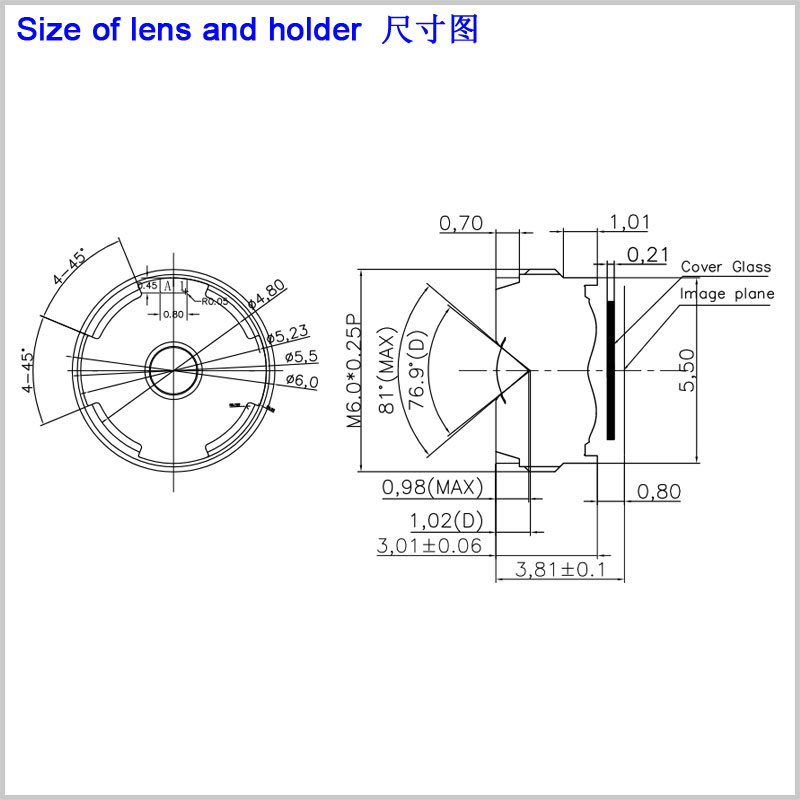 视场角 (FOV): 1/4" D88.9°/H76.1°/V60.2°