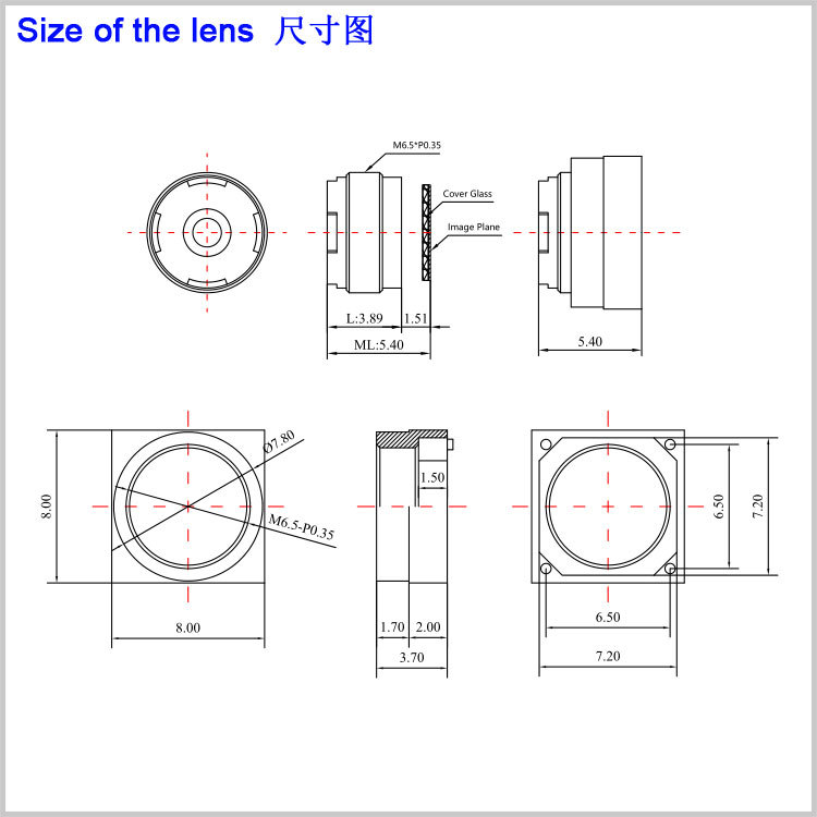 M6.5规格3.2mm焦距高清小镜头手机扫码镜头人脸识别8*8底座650nm