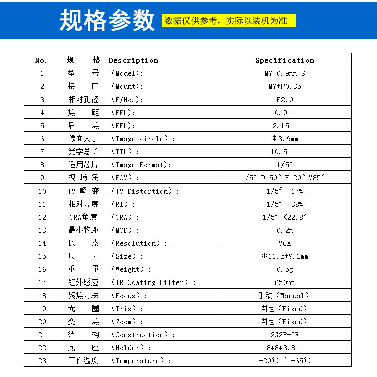例如,M7*P0.35,其中M7代表螺纹直径在7mm左右,称为M7镜头,常见的直径一般为6.8mm左右