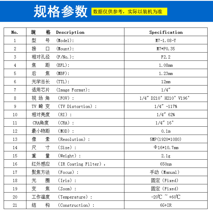例如,M7*P0.35,其中M7代表螺纹直径在7mm左右,称为M7镜头,常见的直径一般为6.8mm左右