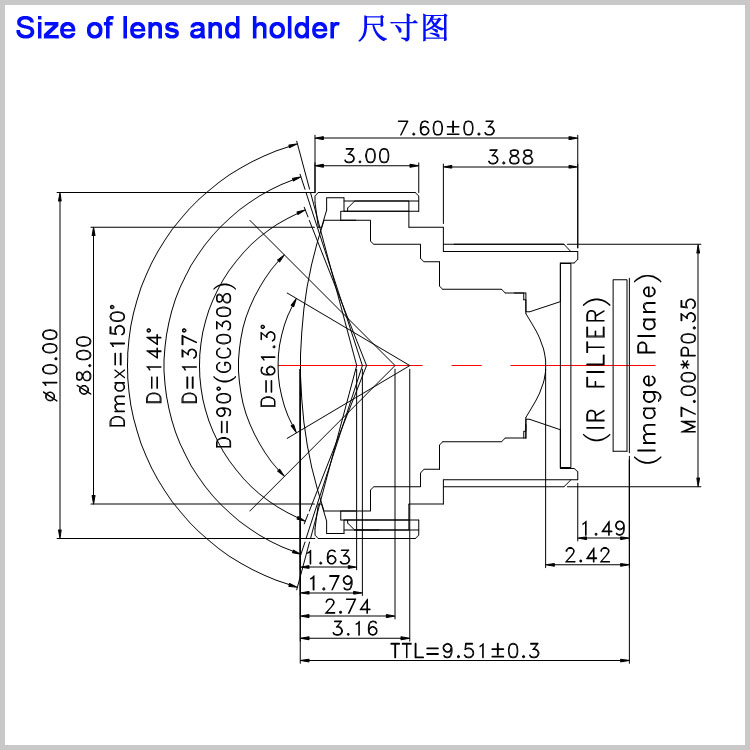 像面大小 (Image circle): Φ5.1mm