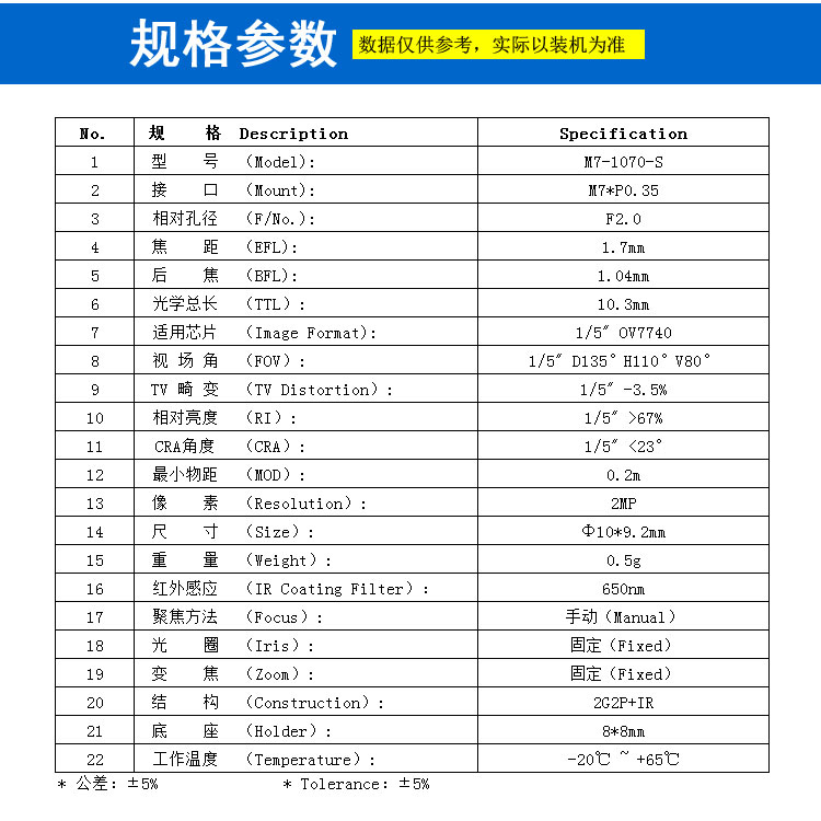 例如,M7*P0.35,其中M7代表螺纹直径在7mm左右,称为M7镜头,常见的直径一般为6.8mm左右