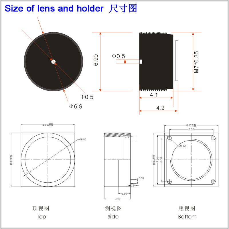 镜头底座 (Holder): 8*8*3.9mm