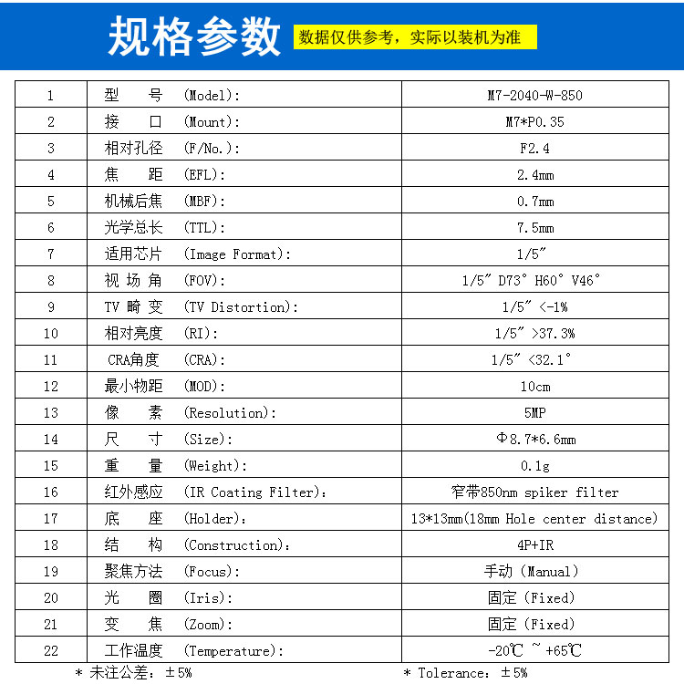 例如,M7*P0.35,其中M7代表螺纹直径在7mm左右,称为M7镜头,常见的直径一般为6.8mm左右
