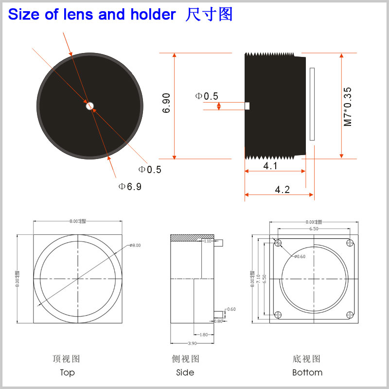 镜头底座 (Holder): 8*8*3.9mm