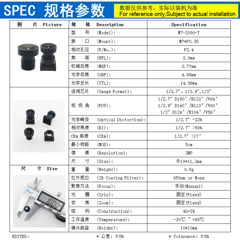 例如,M7*P0.35,其中M7代表螺纹直径在7mm左右,称为M7镜头,常见的直径一般为6.8mm左右