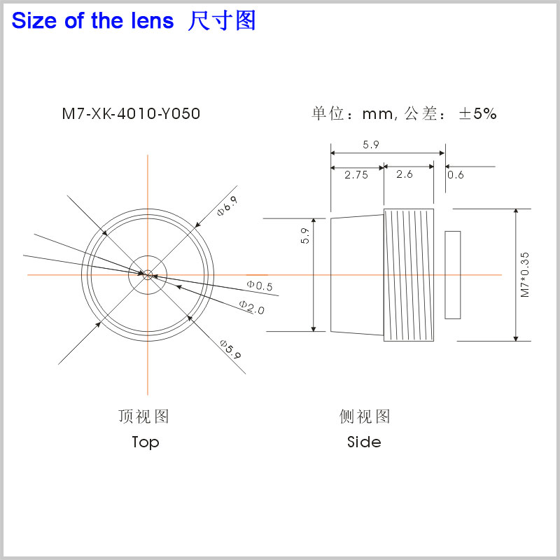 例如,M7*P0.35,其中M7代表螺纹直径在7mm左右,称为M7镜头,常见的直径一般为6.8mm左右