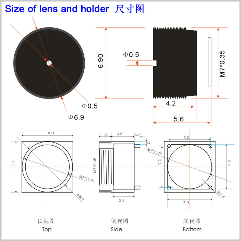 例如,M7*P0.35,其中M7代表螺纹直径在7mm左右,称为M7镜头,常见的直径一般为6.8mm左右