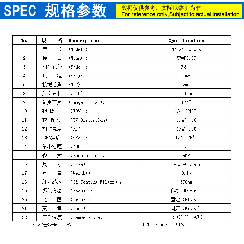 例如,M7*P0.35,其中M7代表螺纹直径在7mm左右,称为M7镜头,常见的直径一般为6.8mm左右