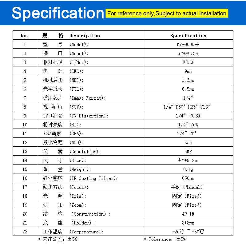 例如,M7*P0.35,其中M7代表螺纹直径在7mm左右,称为M7镜头,常见的直径一般为6.8mm左右