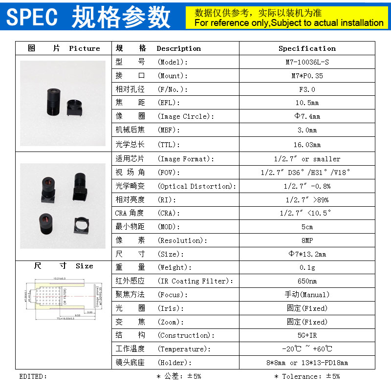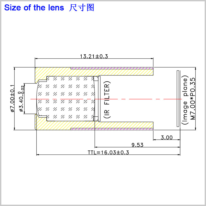 例如,M7*P0.35,其中M7代表螺纹直径在7mm左右,称为M7镜头,常见的直径一般为6.8mm左右