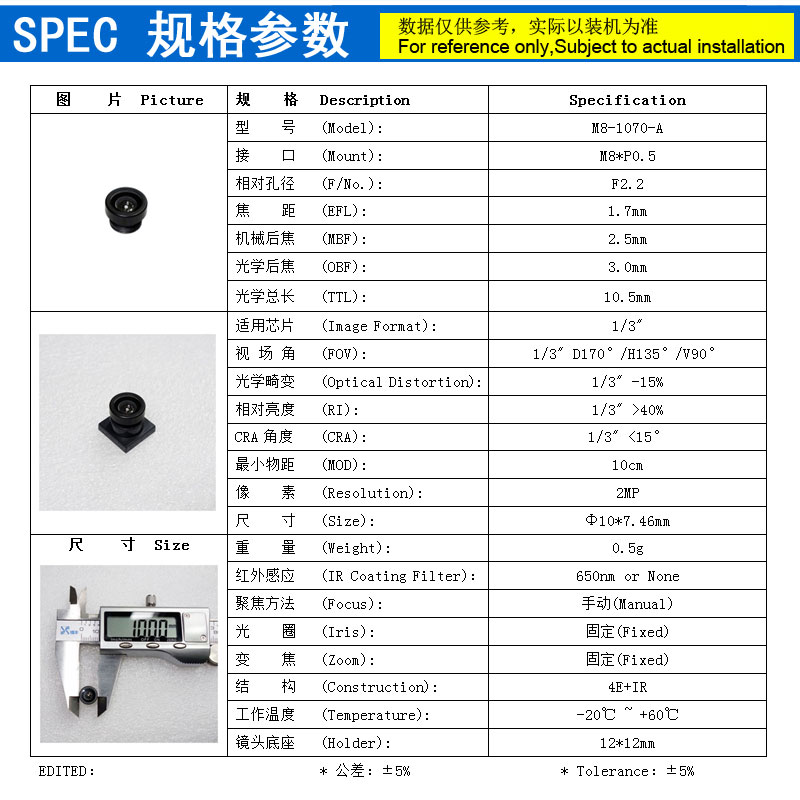 【五】镜头和摄像机种类繁多,只有在实物安装后,才知道适不适合。所以推荐先购买样品安装。合适再量购。