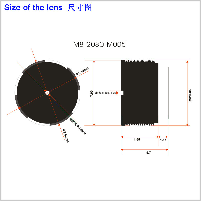 例如,M7*P0.35,其中M7代表螺纹直径在7mm左右,称为M7镜头,常见的直径一般为6.8mm左右