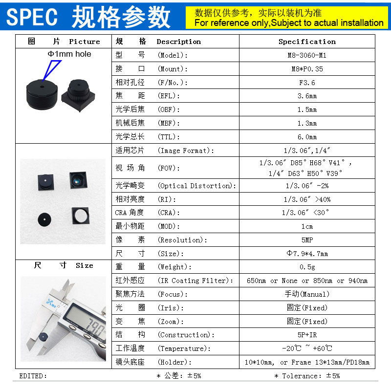 例如,M7*P0.35,其中M7代表螺纹直径在7mm左右,称为M7镜头,常见的直径一般为6.8mm左右