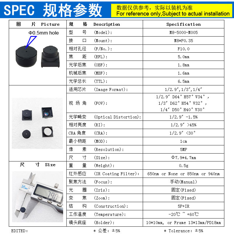 适用芯片 (Image Format): 1/2.9",1/3",1/4"
