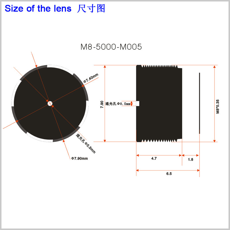例如,M7*P0.35,其中M7代表螺纹直径在7mm左右,称为M7镜头,常见的直径一般为6.8mm左右