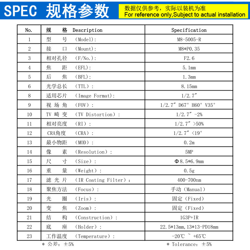 例如,M7*P0.35,其中M7代表螺纹直径在7mm左右,称为M7镜头,常见的直径一般为6.8mm左右